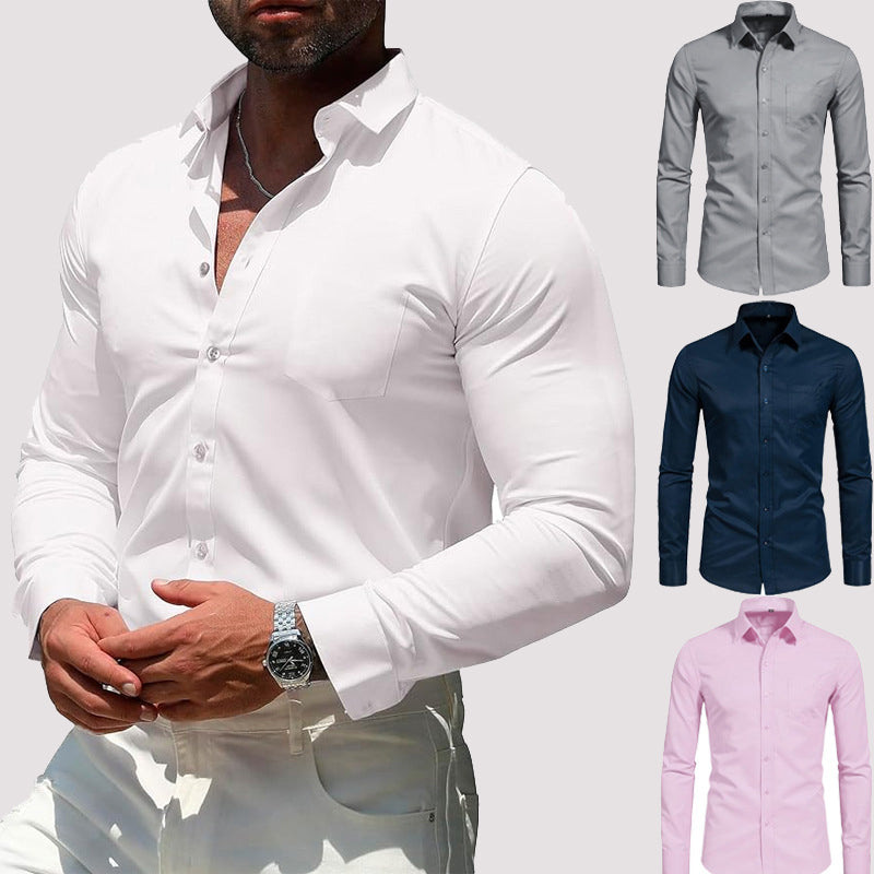👔 Silitystä vaativa miesten joustava pitkähihainen paita: mukava ja tyylikäs, vaivattomasti istuva 3D-malli 💼