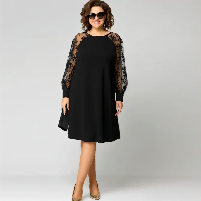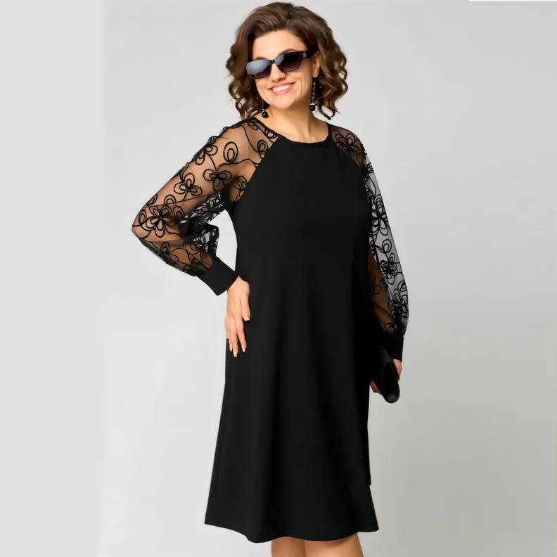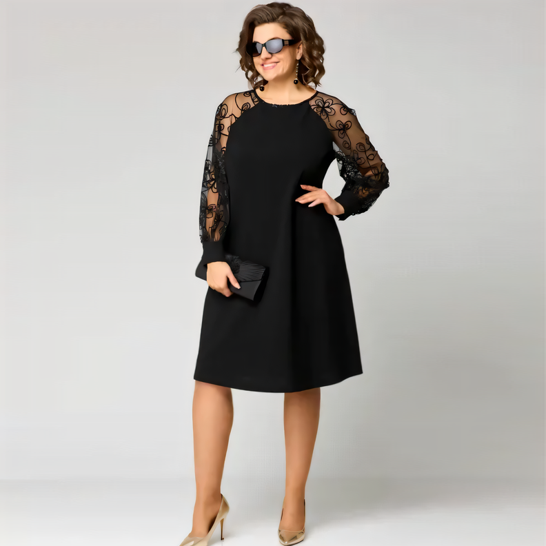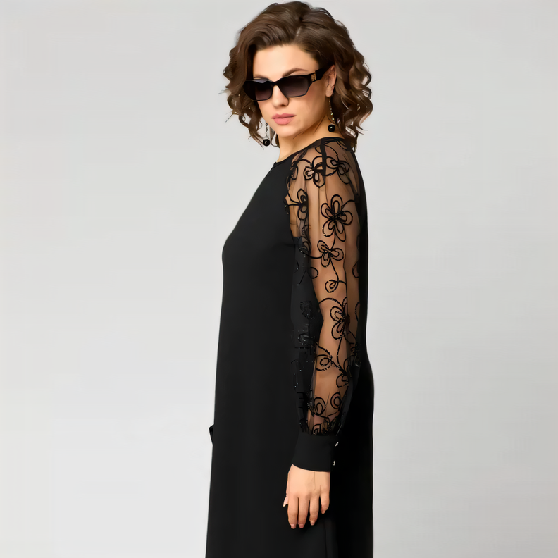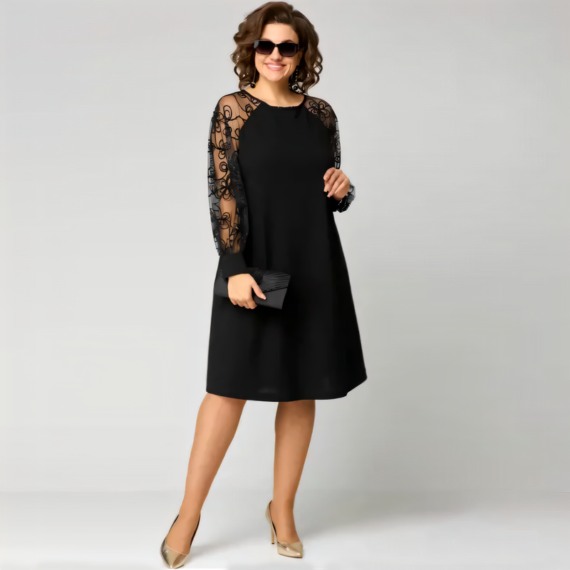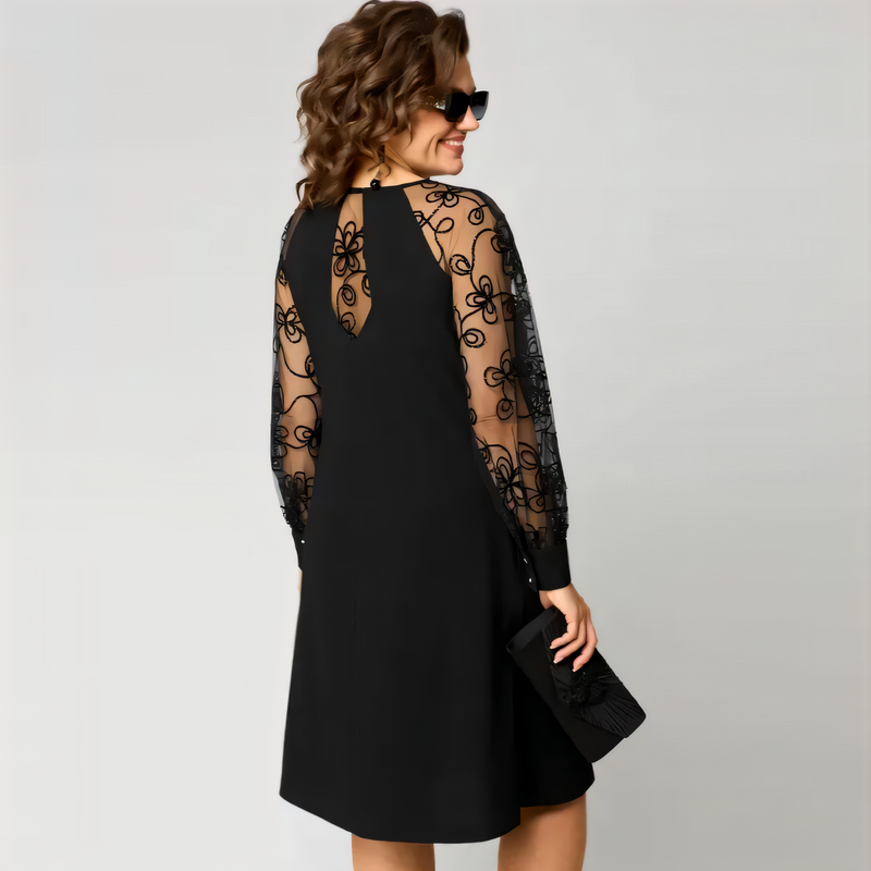 ELEGANTTI JA NAISELLINEN - Pitsitilkkutyön ja vartalonmyötäisen muotoilun yhdistelmä luo naisellisen ja hienostuneen ilmeen. Mekko sopii täydellisesti tilaisuuksiin, joissa hillitty eleganssi on tärkeää, ja pitkät hihat tarjoavat lisälämpöä ja monipuolisuutta.