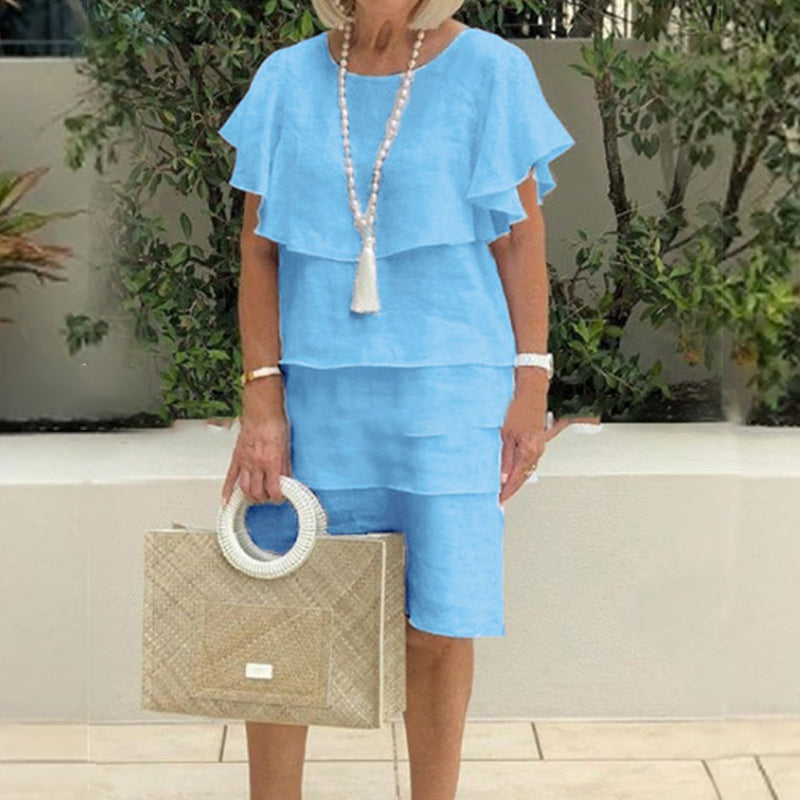- 1 x Pyöreäkauluksinen, kellohihainen, monikerroksinen midimekko