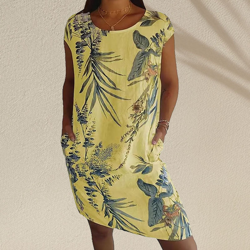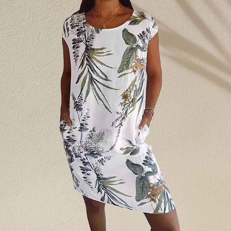 - 1 x Merseroitua puuvillaa oleva kukkakuvioinen taskullinen mekko