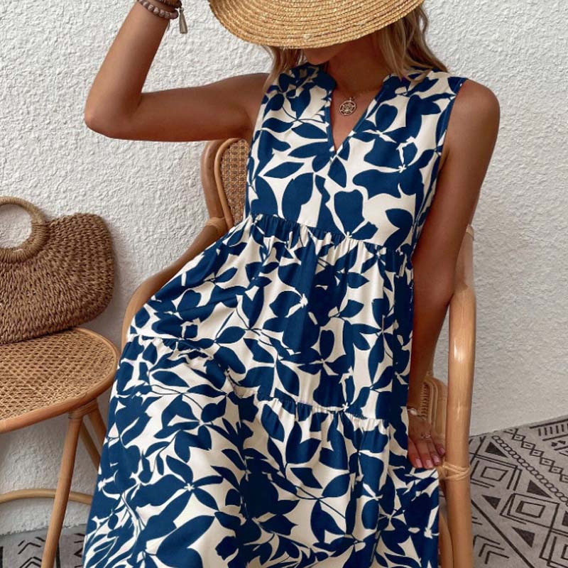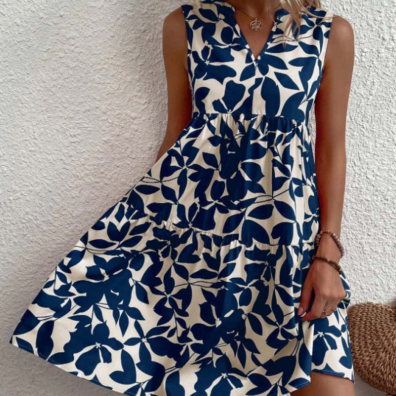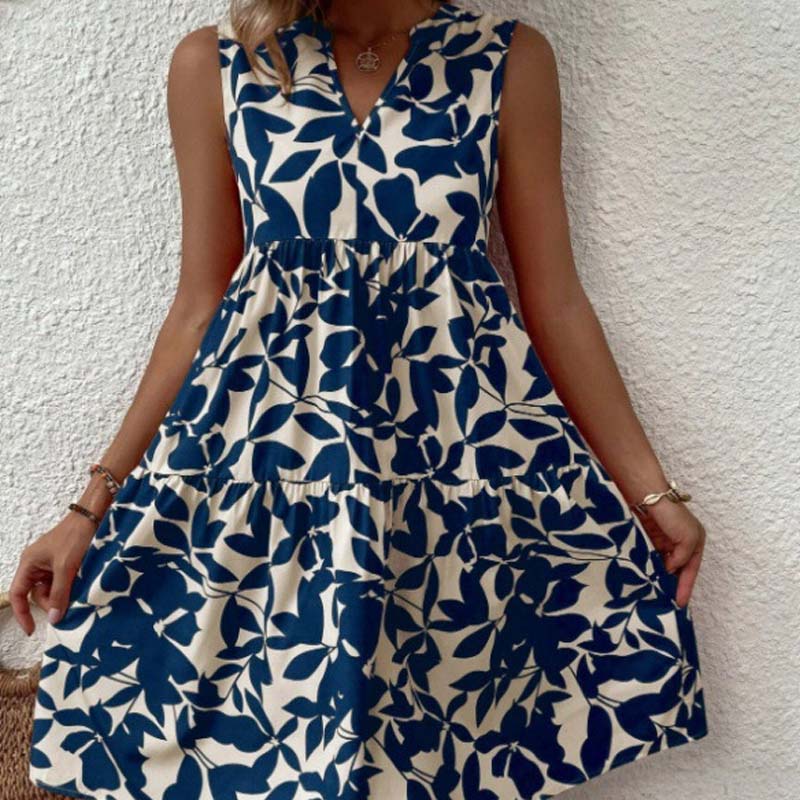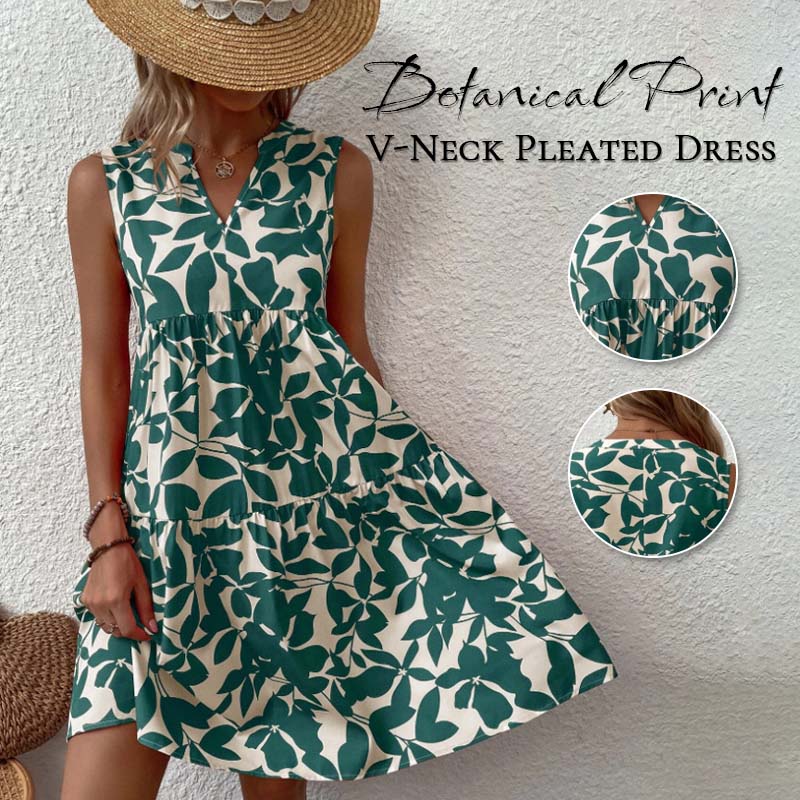 🌸2025 Uusi saapuminen💕Botanical Print V-kaula-aukkoinen laskostettu mekko