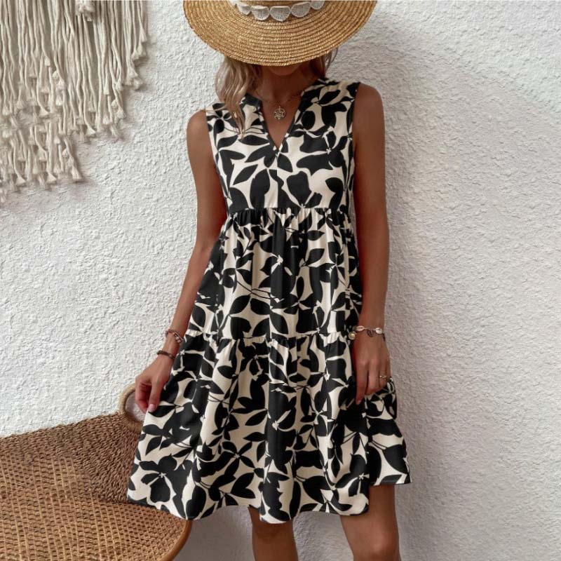- 1 x Kasvitieteellinen printti V-aukkoinen laskostettu mekko